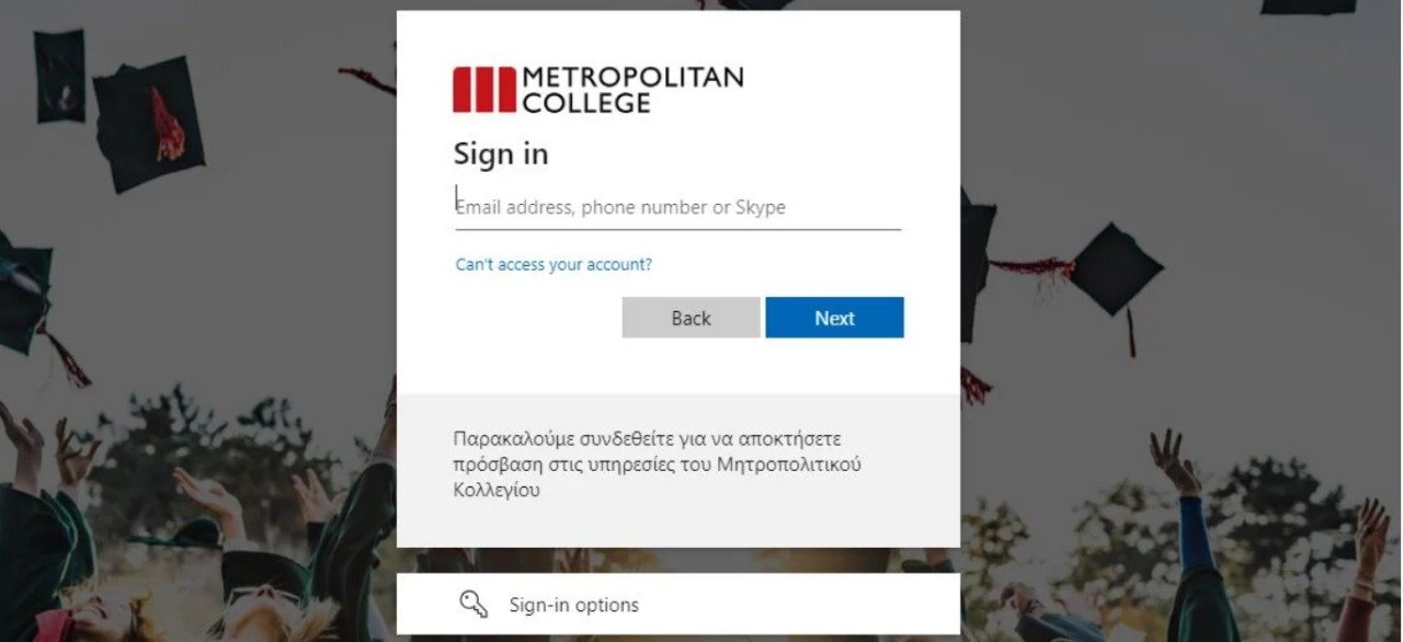 - A new tab will open, enter your Metropolitan College email address.